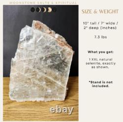 About this must have item. This natural formation crystal statement piece is perfect to use at home or in the office to help keep the vibrations high. Selenite is an energy transmitter, especially when used during a Reiki or energy healing practice. Use during meditation or prayer to encourage the flow of good vibes that you send and receive. This stone will also bring you comfort and security in moments of despair and can even help to calm anxiety. This crystal is also incredibly effective in protecting the energy of a room or home. Placing Selenite at all 4 corners of a room or your home is said to help with keeping the vibrations high and to ward off negativity. A must have and a shop favorite! 1 extra large natural formation ice selenite slab, exactly as pictured. 10" tall / 7" wide / 2 deep (inches).