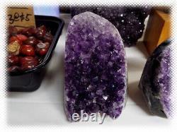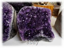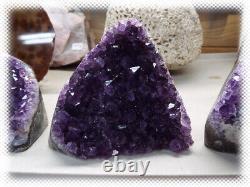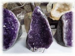 11 PIÈCES D'AFFICHAGE DE GÉODES CRISTALLINS D'AMÉTHYSTE À FOND PLAT. Chaque spécimen mesure de 3" à 4".