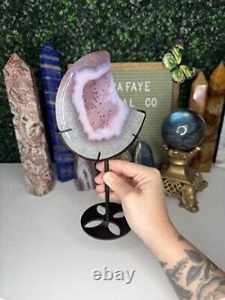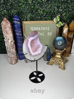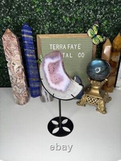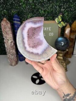 Chaque cristal d'agate est une œuvre d'art unique, présentant ses propres motifs et variations envoûtants. Des tranches polies aux pièces de bijoux vibrantes, l'attrait de l'agate captive l'œil et ajoute une touche de beauté naturelle à tout environnement. Que ce soit dans la méditation, placée dans votre espace de vie ou portée comme un talisman protecteur, l'agate rayonne son énergie transformante, inspirant équilibre, protection et énergie positive.